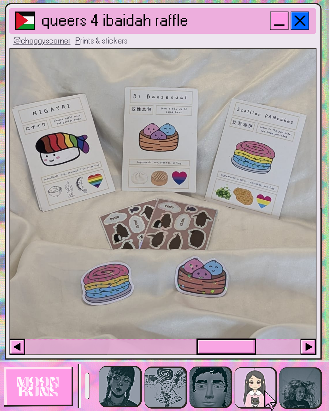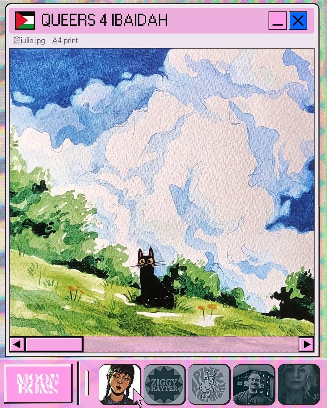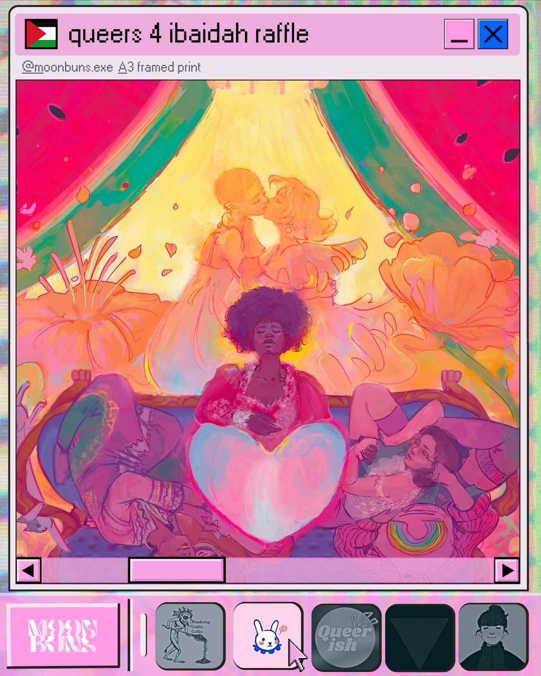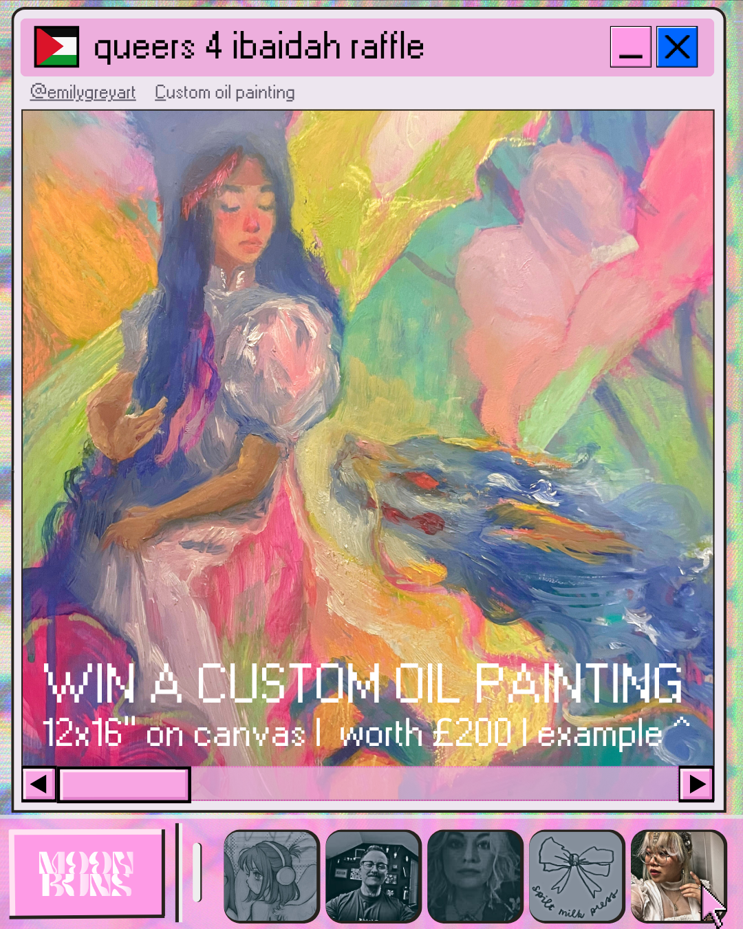 Hi! We're Moonbuns, a queer art collective based in Nottingham. We're here to raise money for Ibaidah, a 16 year old boy from Gaza who dreams of being a psychiatrist.