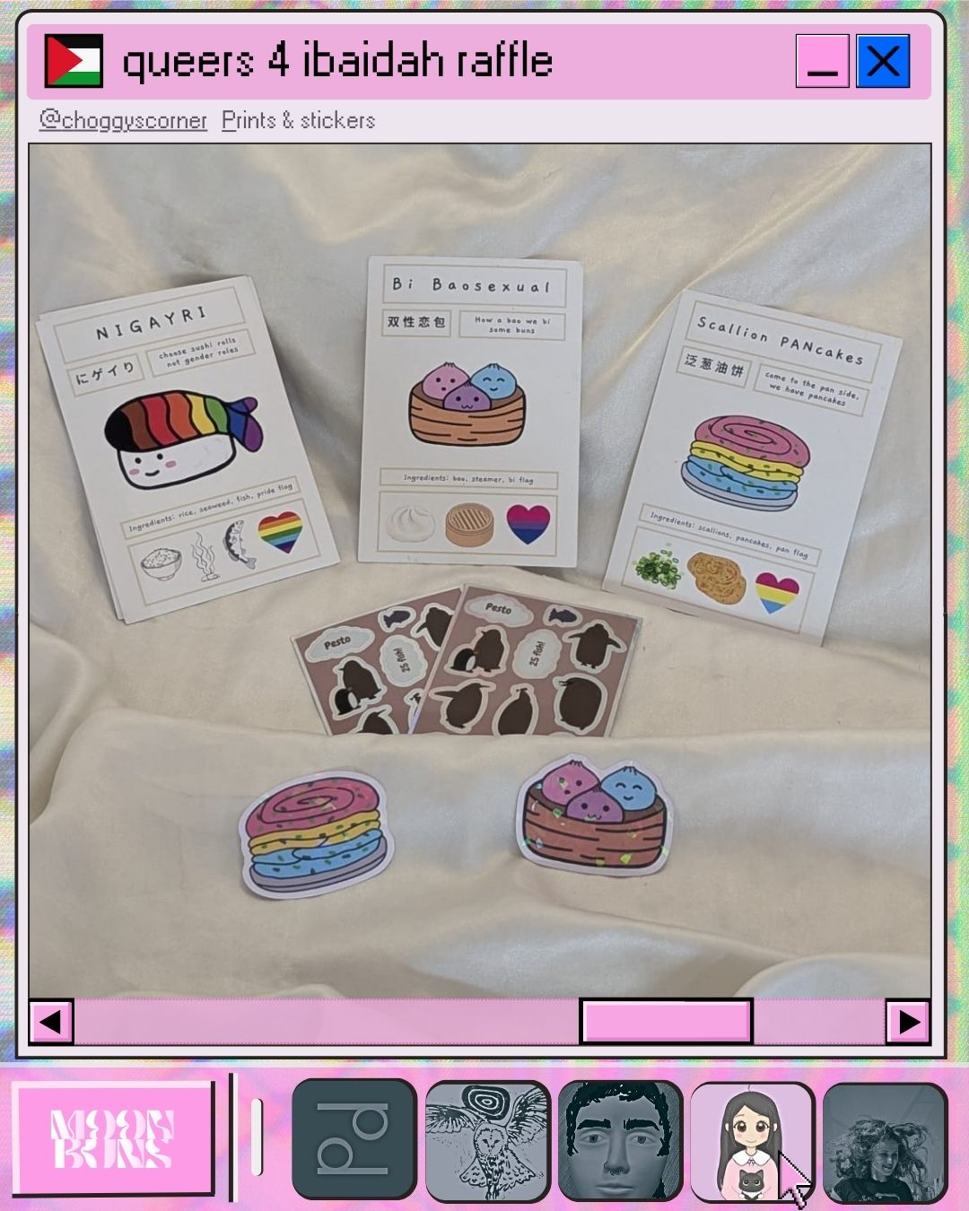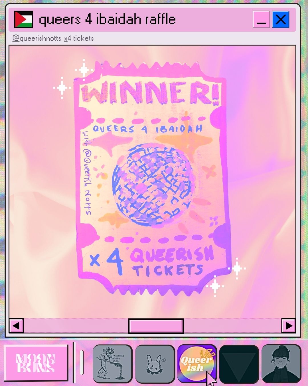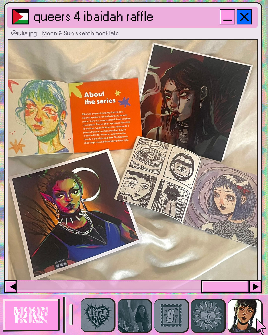 Hi! We're Moonbuns, a queer art collective based in Nottingham. We're here to raise money for Ibaidah, a 16 year old boy from Gaza who dreams of being a psychiatrist.