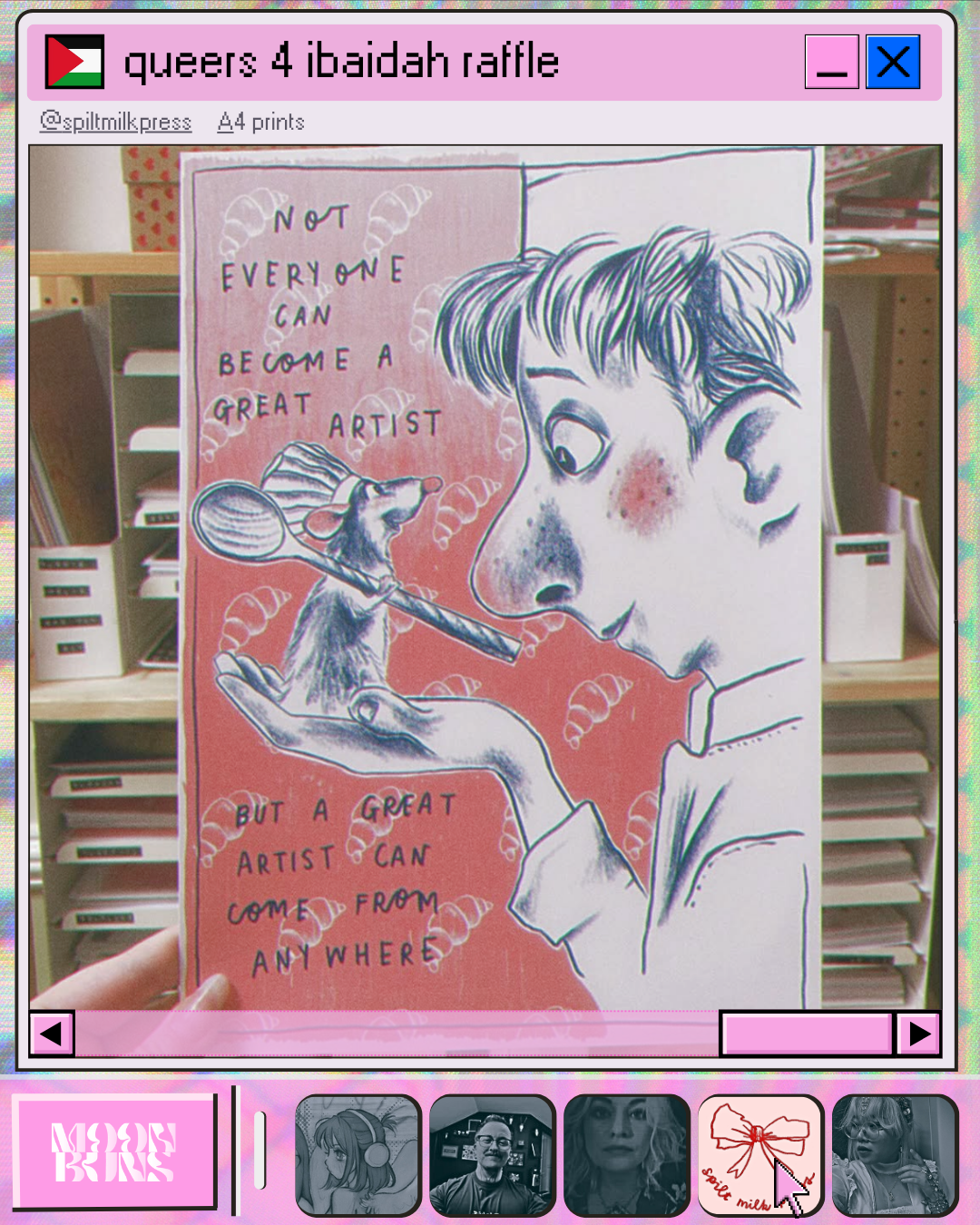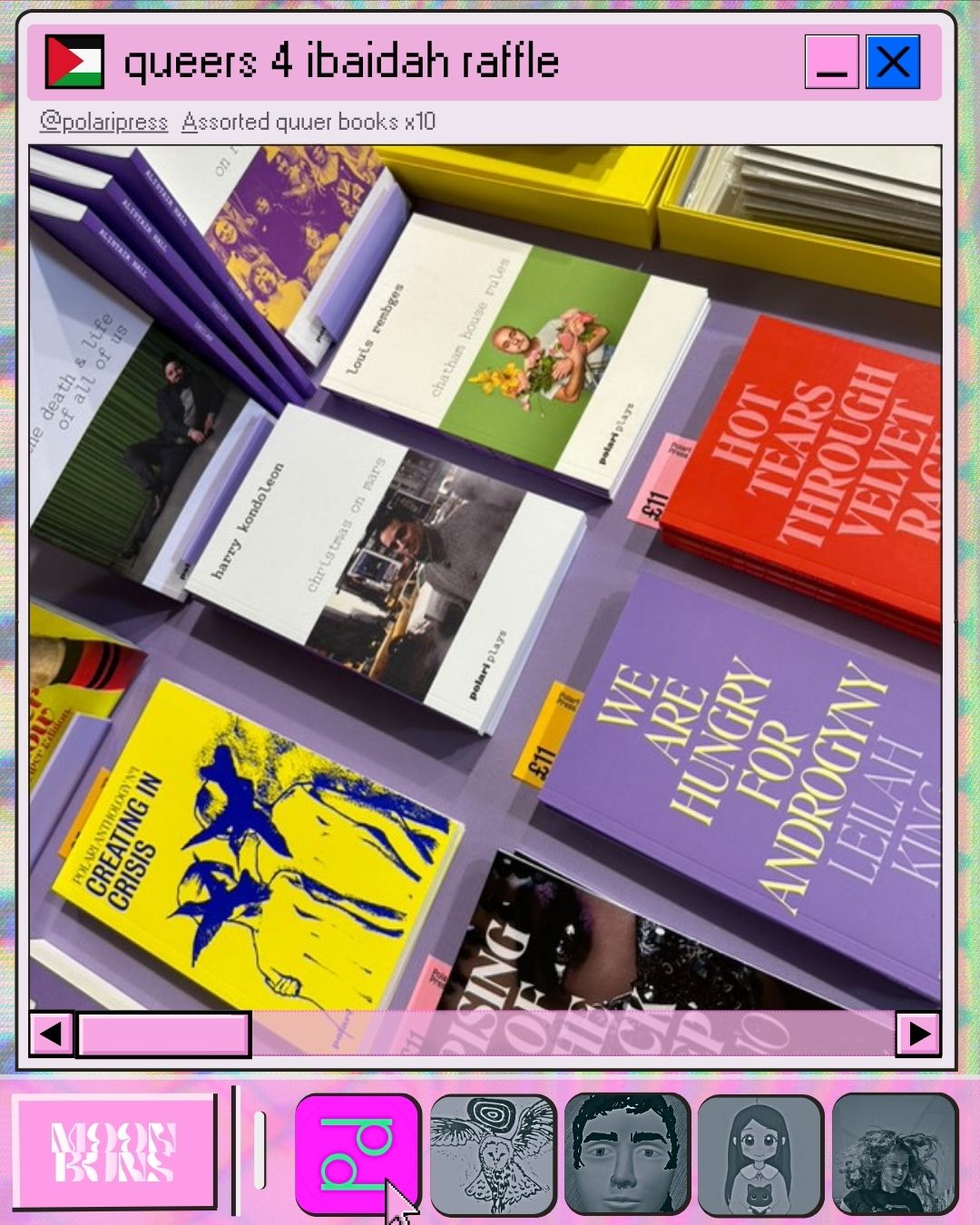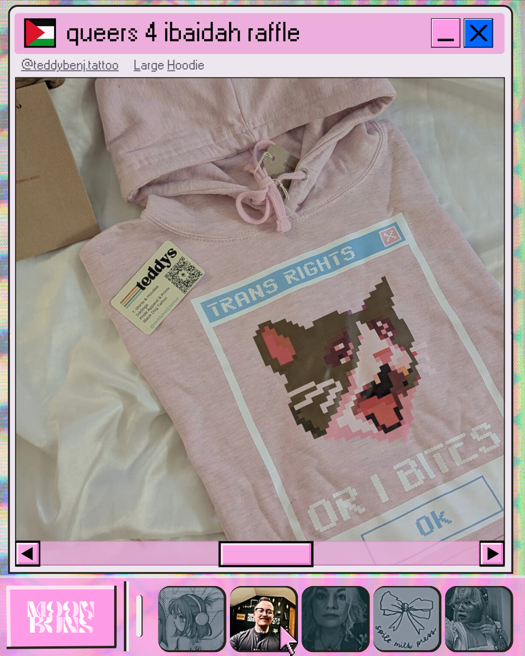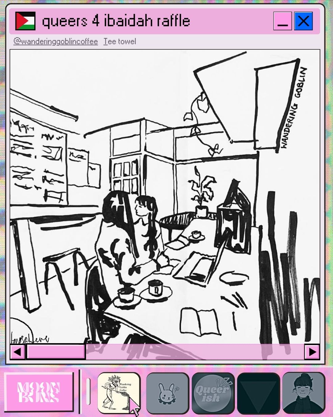 Hi! We're Moonbuns, a queer art collective based in Nottingham. We're here to raise money for Ibaidah, a 16 year old boy from Gaza who dreams of being a psychiatrist.